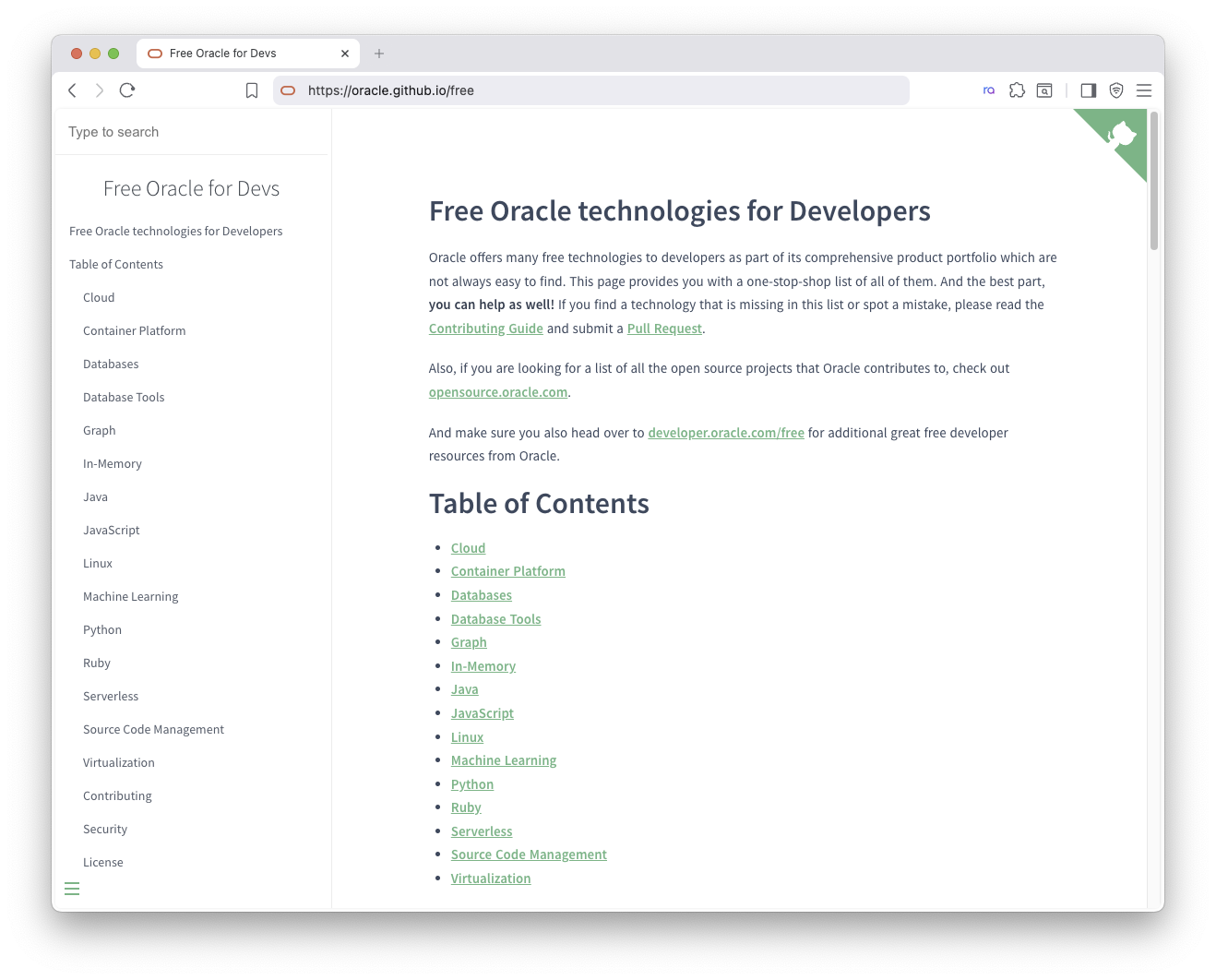 However, the list goes on. Hence, a while back, we put together oracle.github.io/free, a GitHub page that lists all free software for Oracle. On that page, you can find freely available software, and because it is a GitHub page, anybody can contribute and help keep the list up to date.